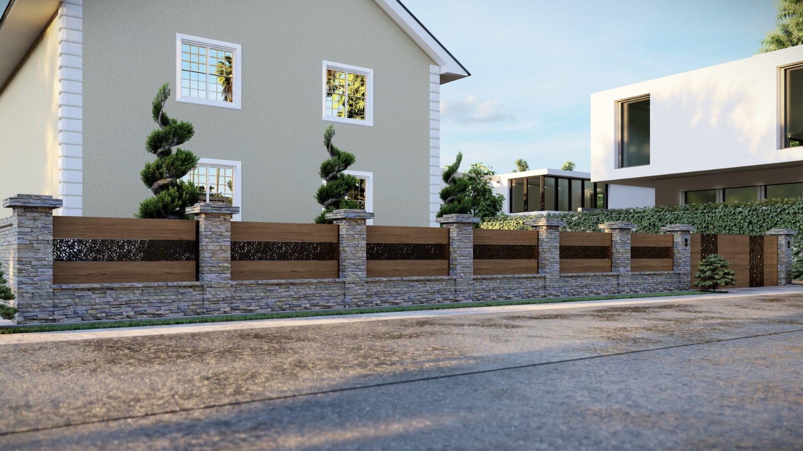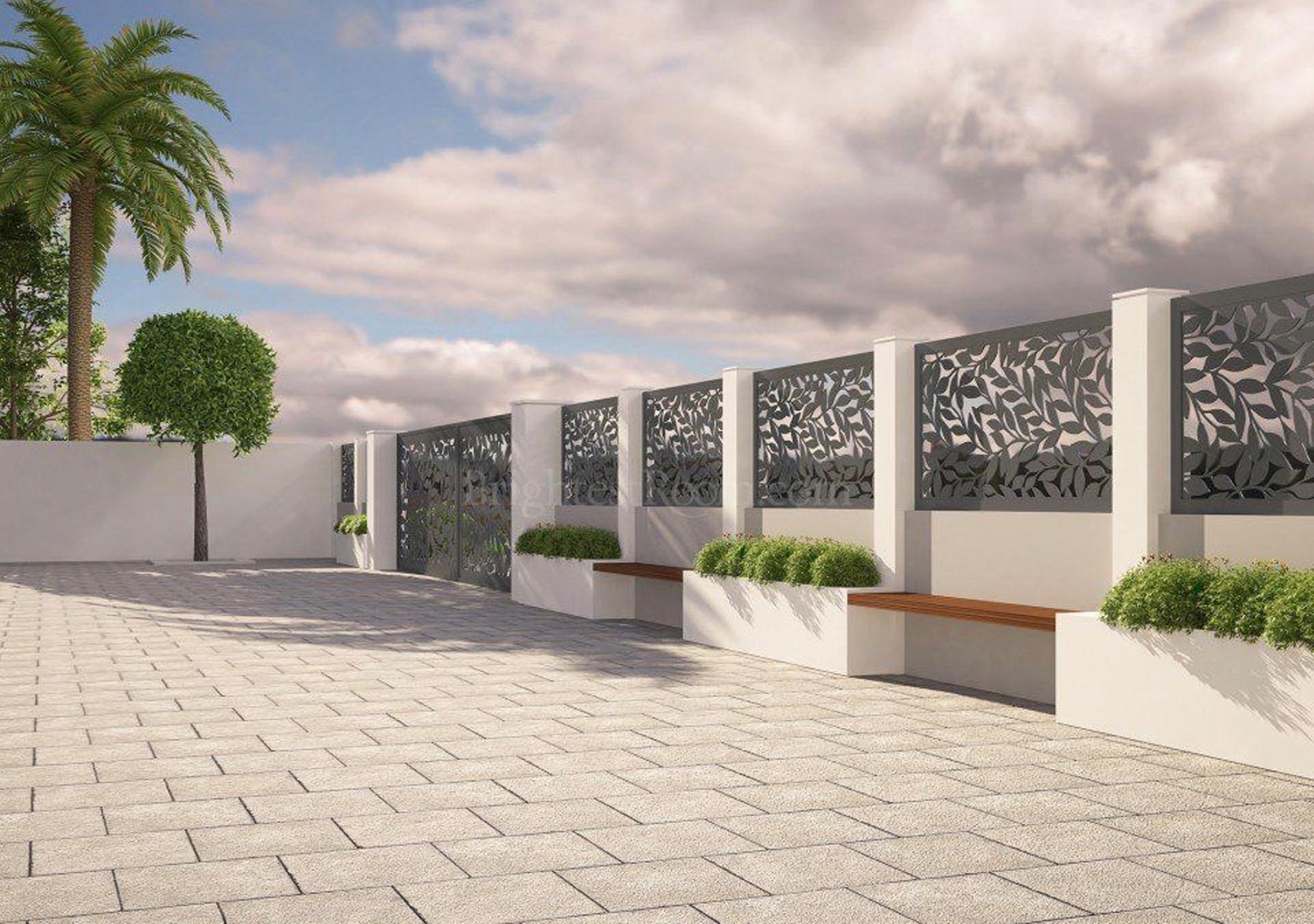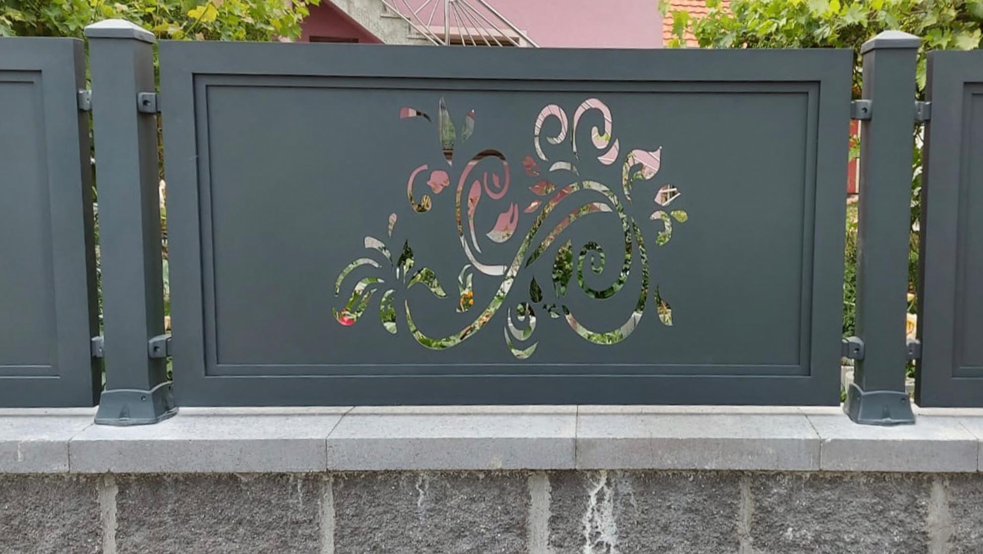 Разноликост наших модела, боја, дизајна и декора ограде пружа вам изванредну слободу у дизајну ограде. Од једноставне ограде до богато украшене ограде. Велики утицај у квалитету и дуготрајности има пластификација производа- наношење прашкасте боје која алуминијумске профиле штити од спољашњих утицаја.
