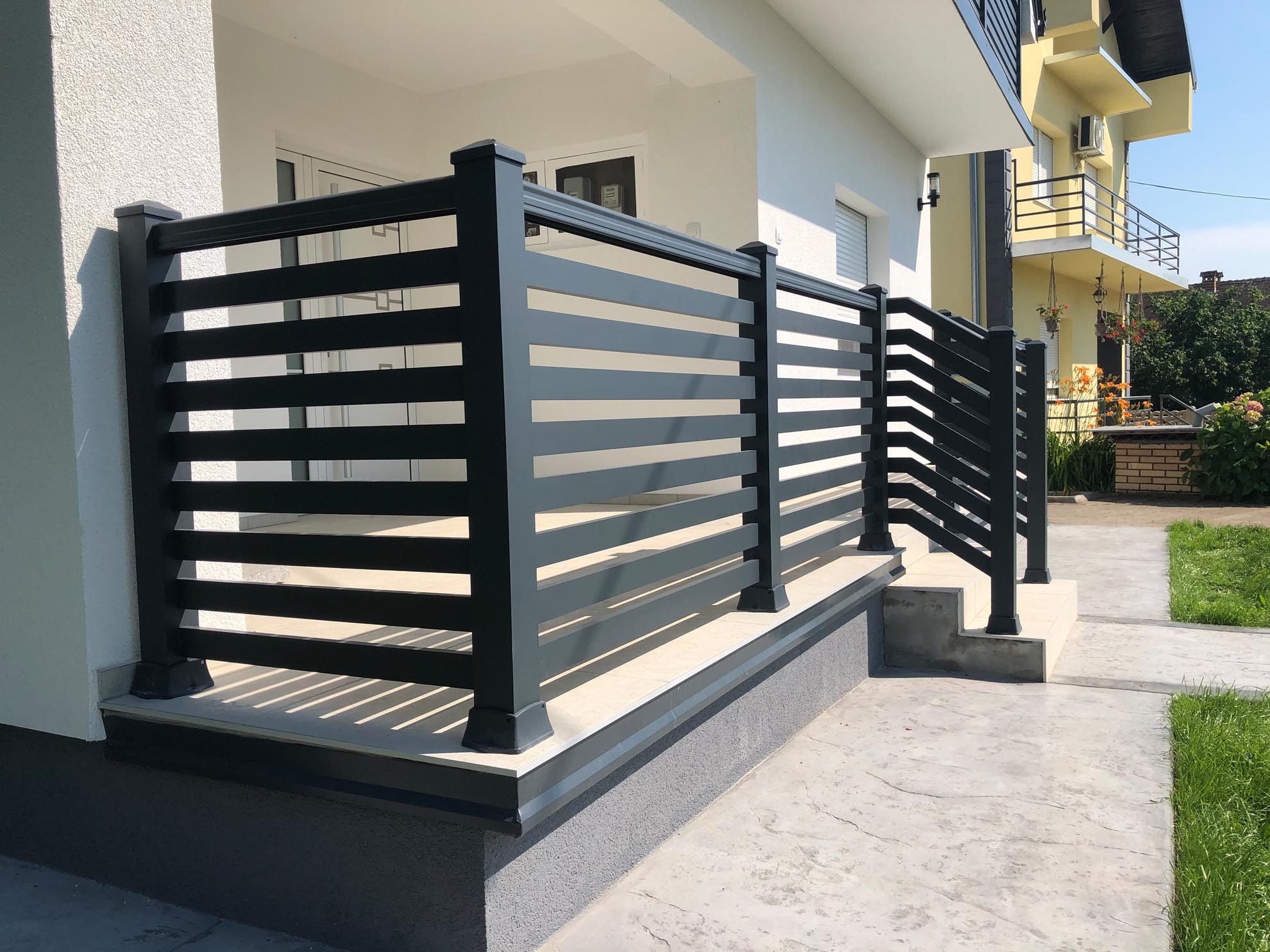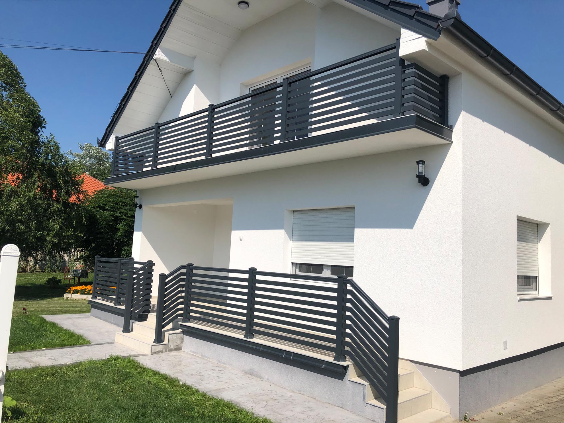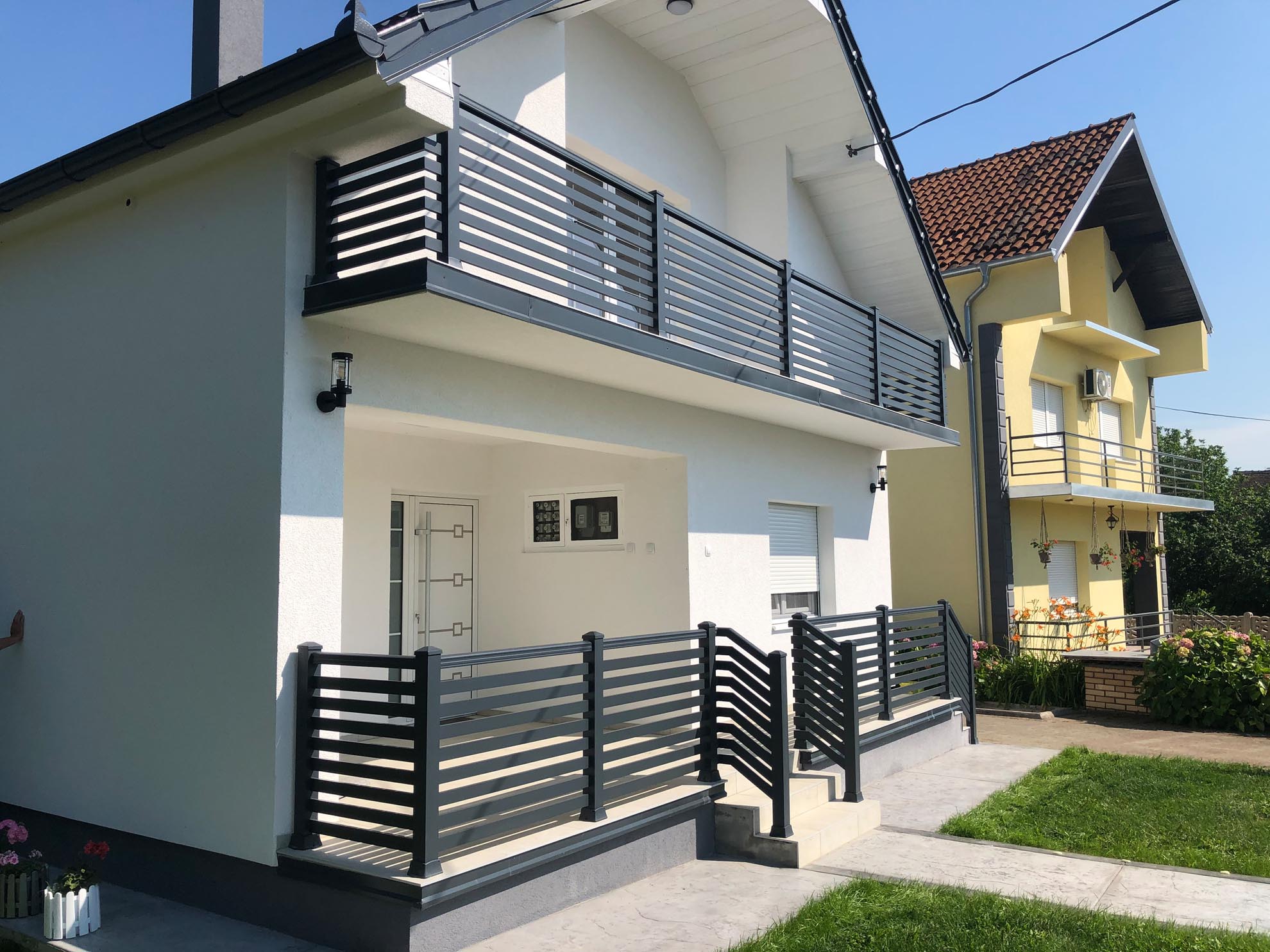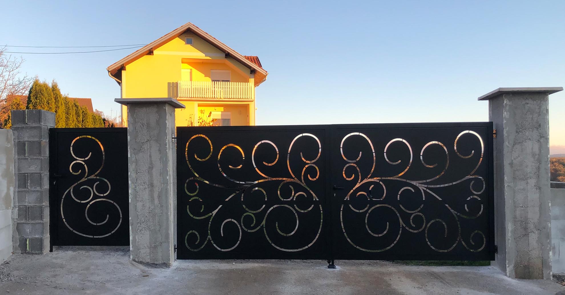 Важан сегмент пословања нашег предузећа је израда и уградња алуминијумских капија ограда и гелендера за комплетне објекте по принципу кључ у руке. Применом најсавременије технологије израде и наквалитетнијих материјала, циљ нам је направити ограде које ће трајати читав живот и у којима ће власници моћи уживати дуги низ година.