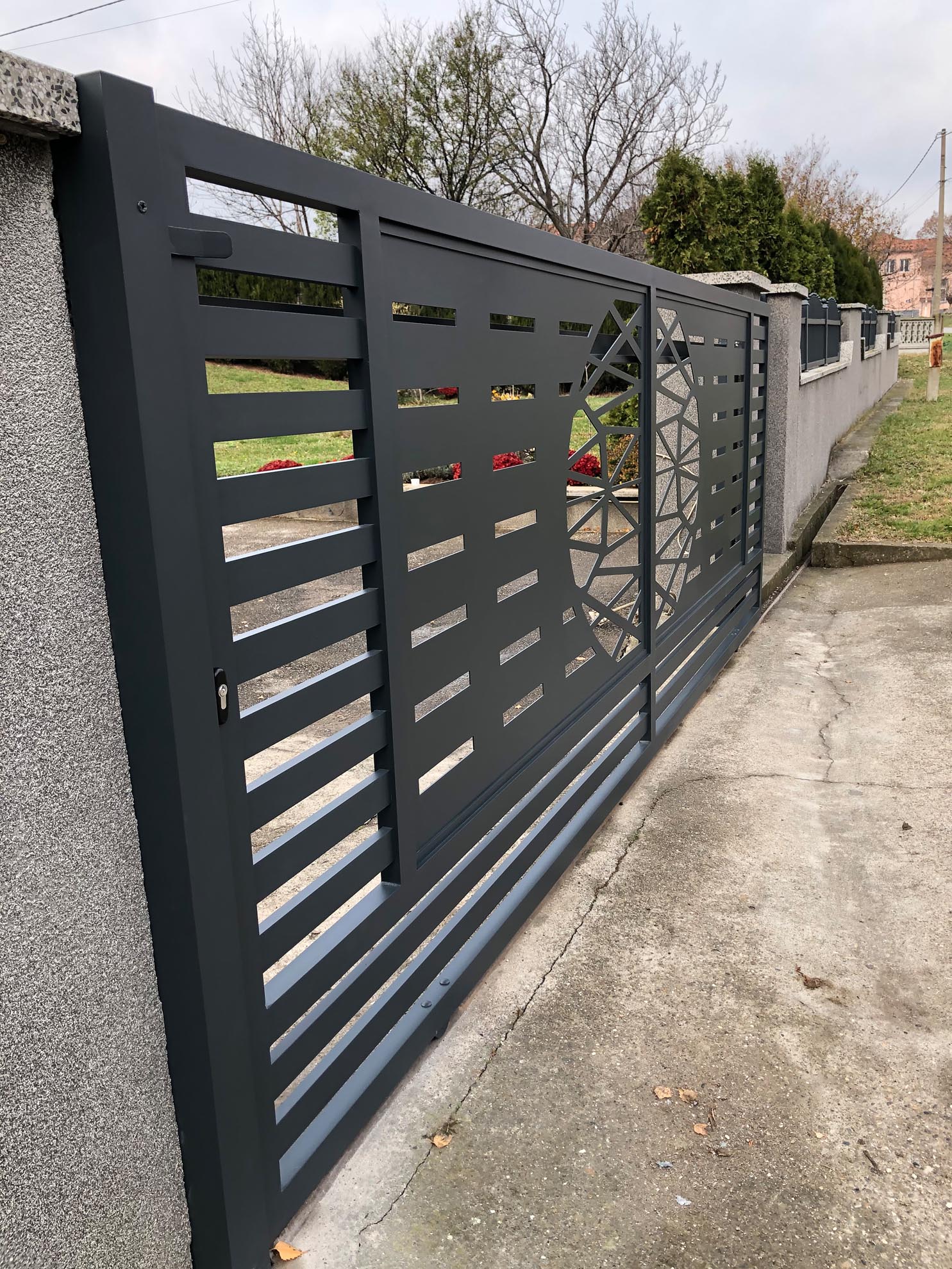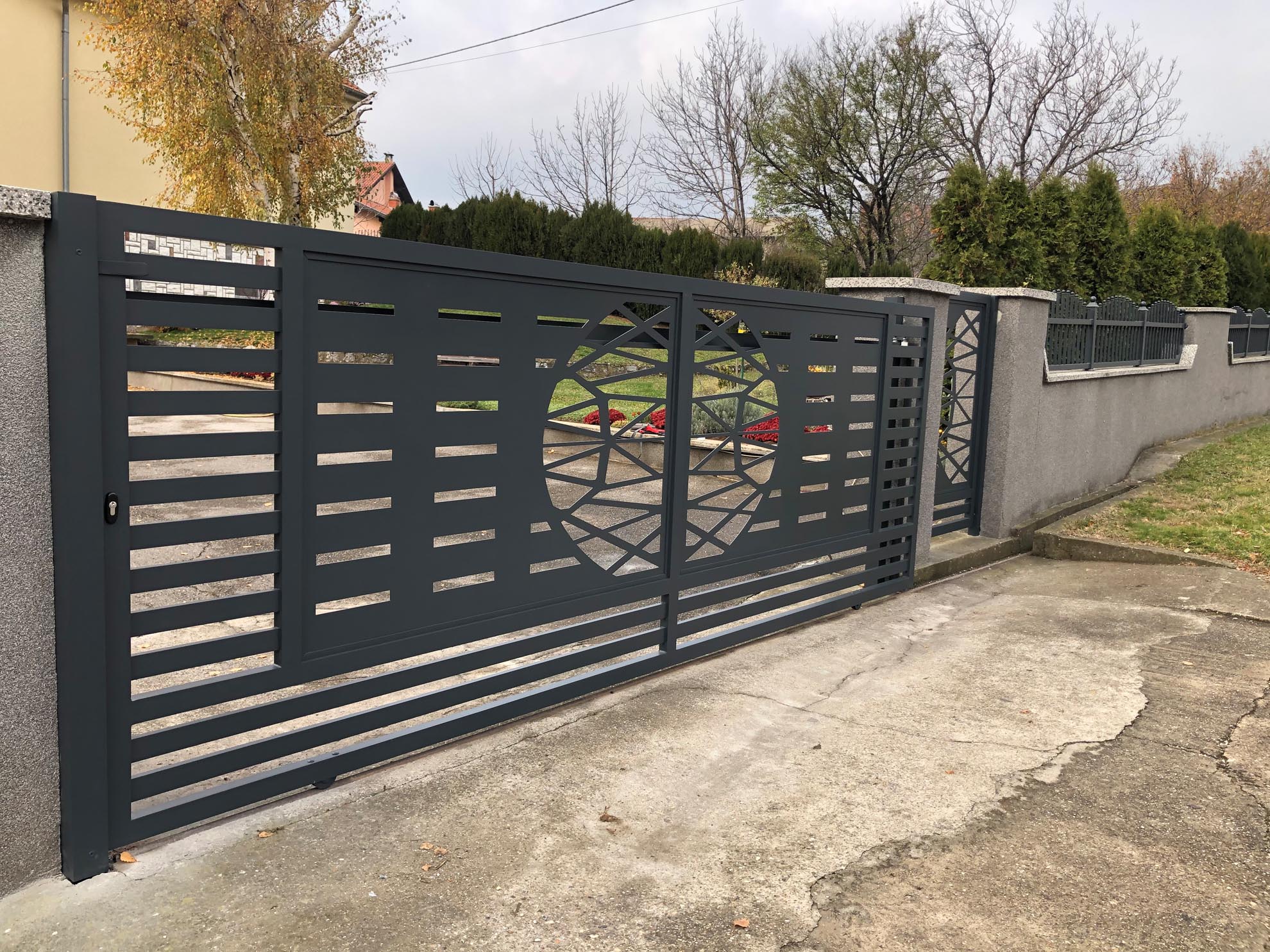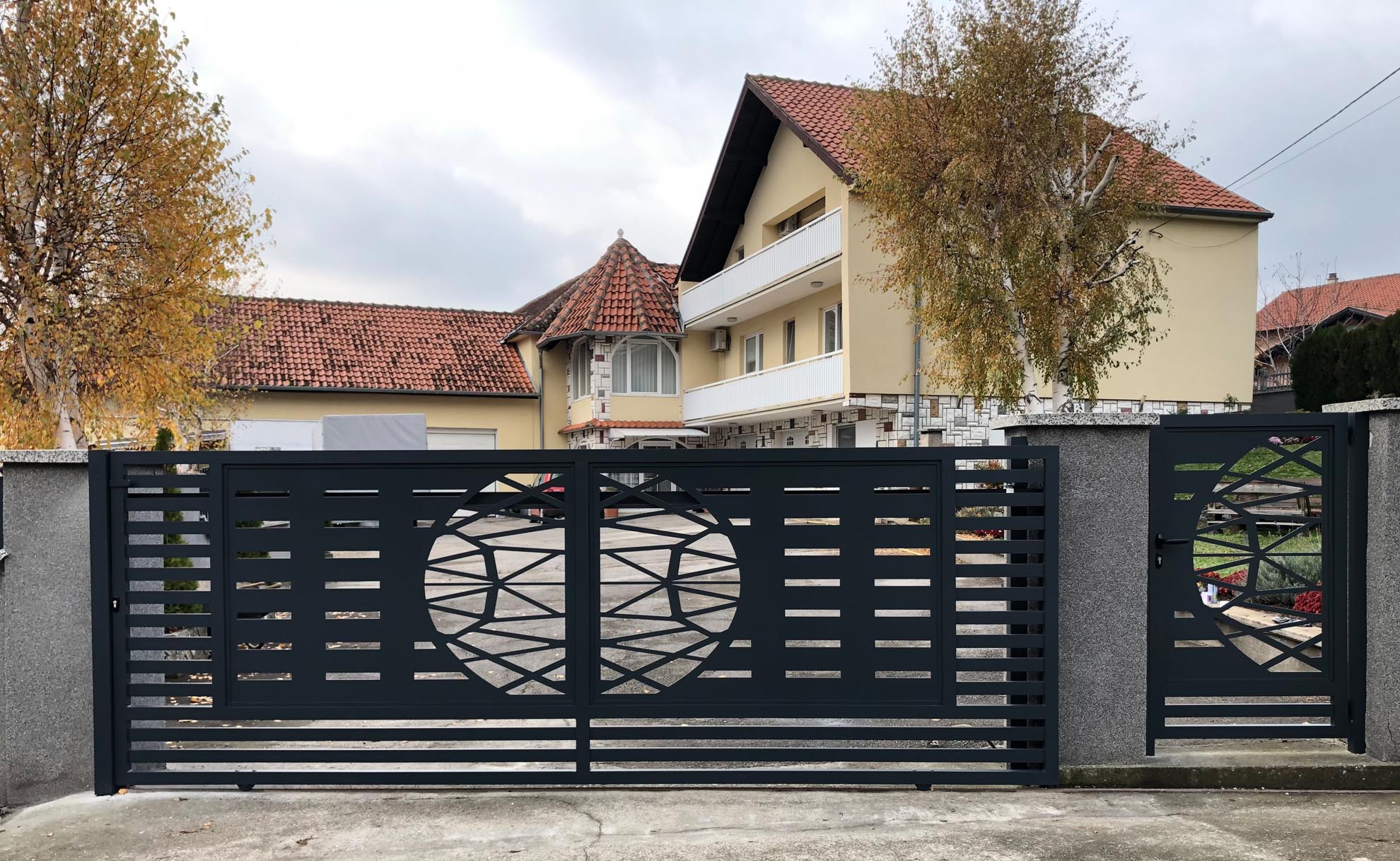 Важан сегмент пословања нашег предузећа је израда и уградња алуминијумских капија ограда и гелендера за комплетне објекте по принципу кључ у руке. Применом најсавременије технологије израде и наквалитетнијих материјала, циљ нам је направити ограде које ће трајати читав живот и у којима ће власници моћи уживати дуги низ година.