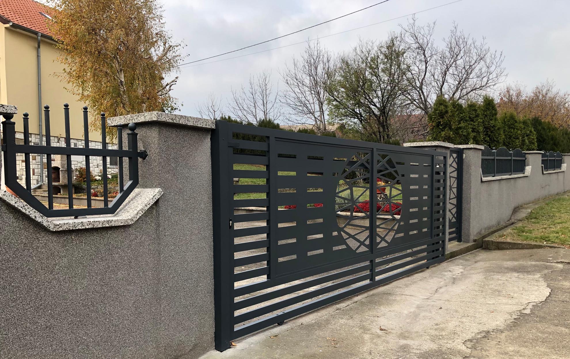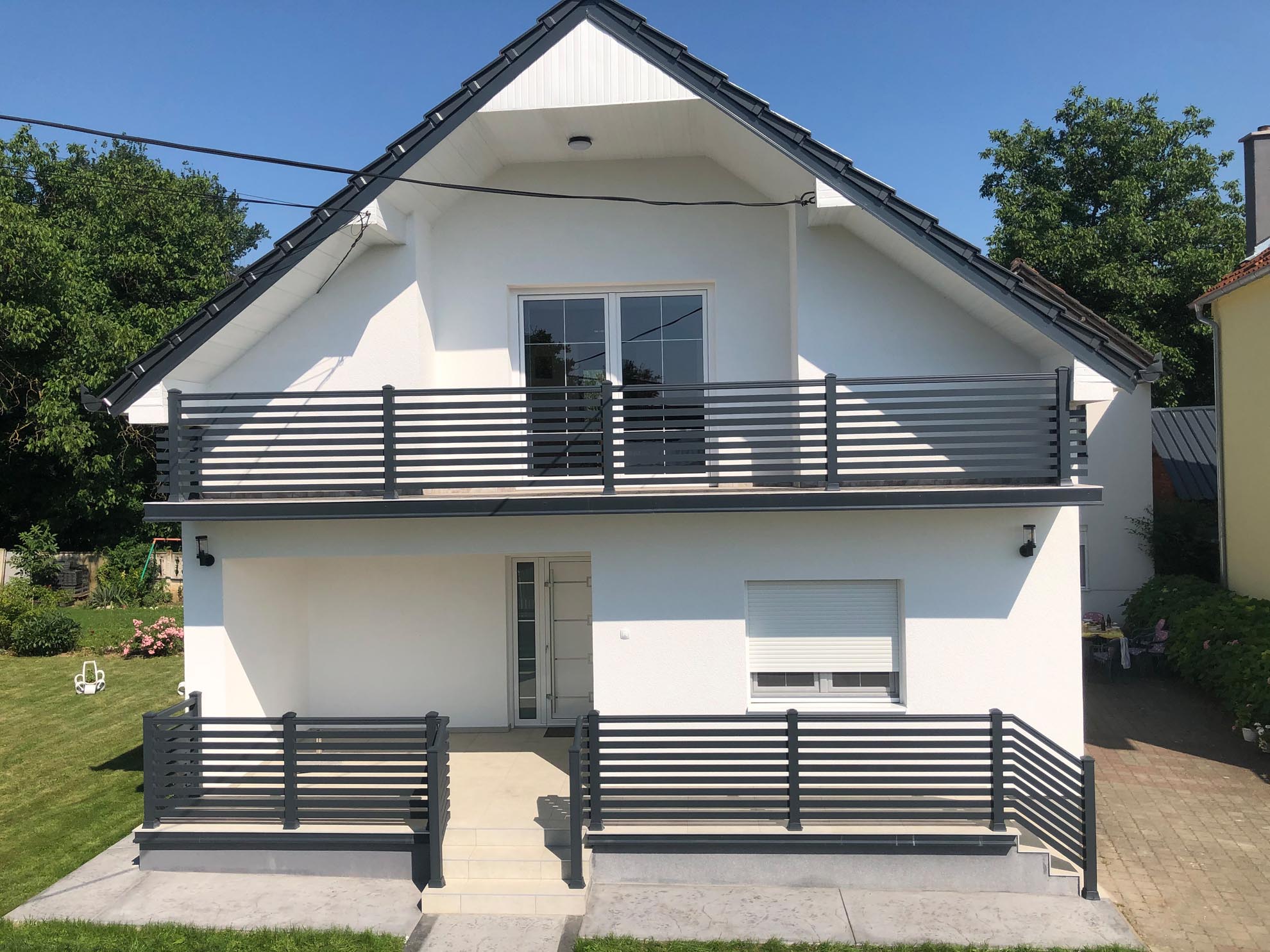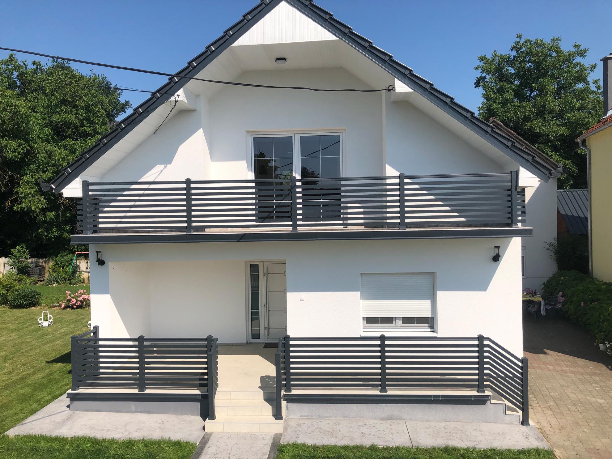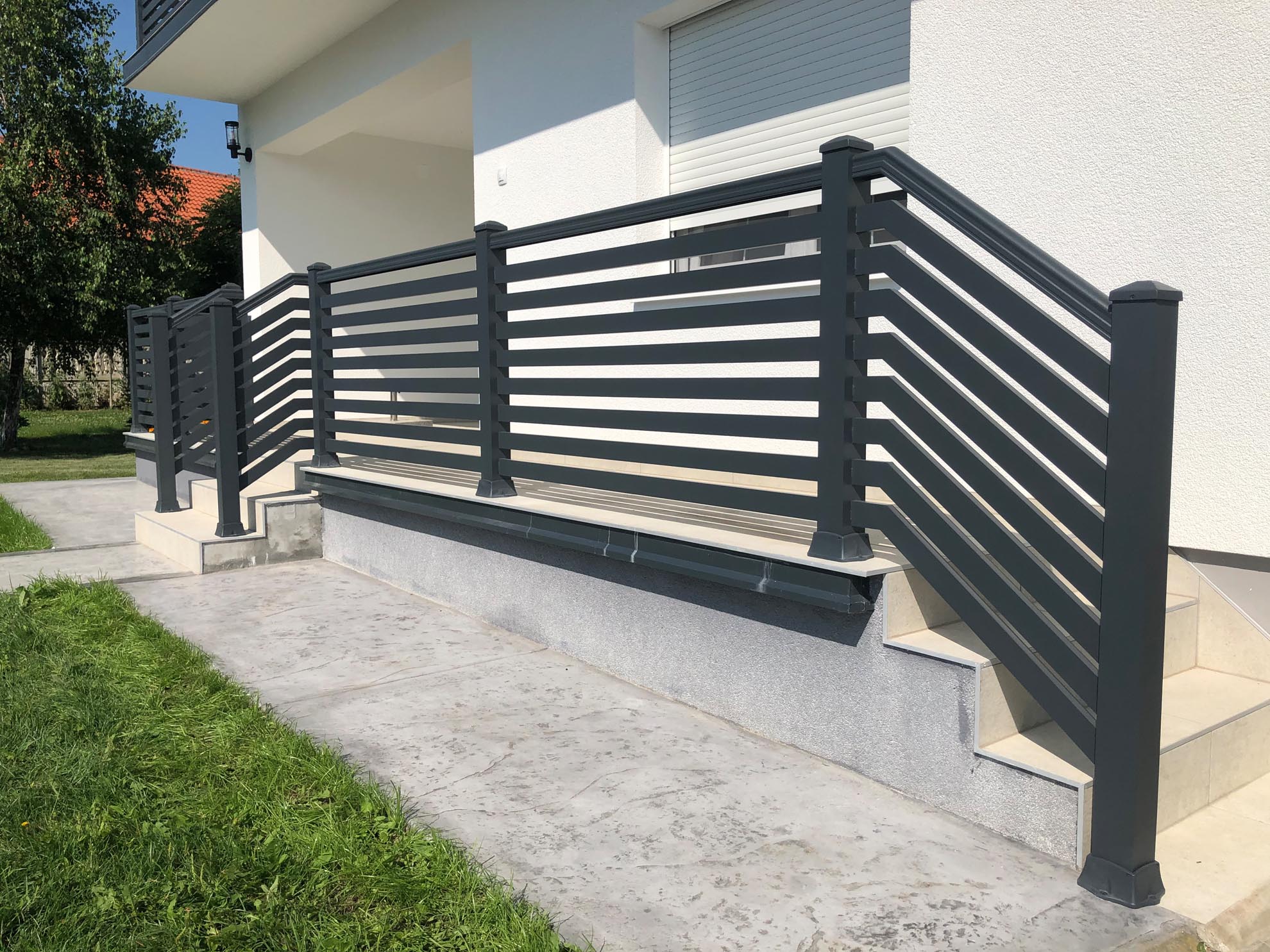 Важан сегмент пословања нашег предузећа је израда и уградња алуминијумских капија ограда и гелендера за комплетне објекте по принципу кључ у руке. Применом најсавременије технологије израде и наквалитетнијих материјала, циљ нам је направити ограде које ће трајати читав живот и у којима ће власници моћи уживати дуги низ година.